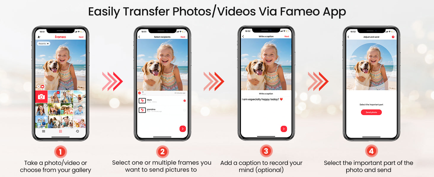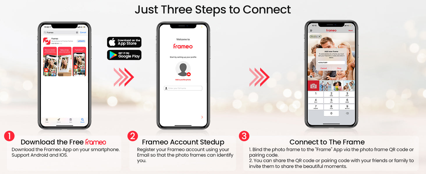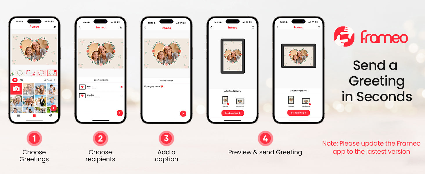 Using the free Frameo app, friends and family can instantly send photos & short videos straight to the frame—no matter where they live 🌍💕