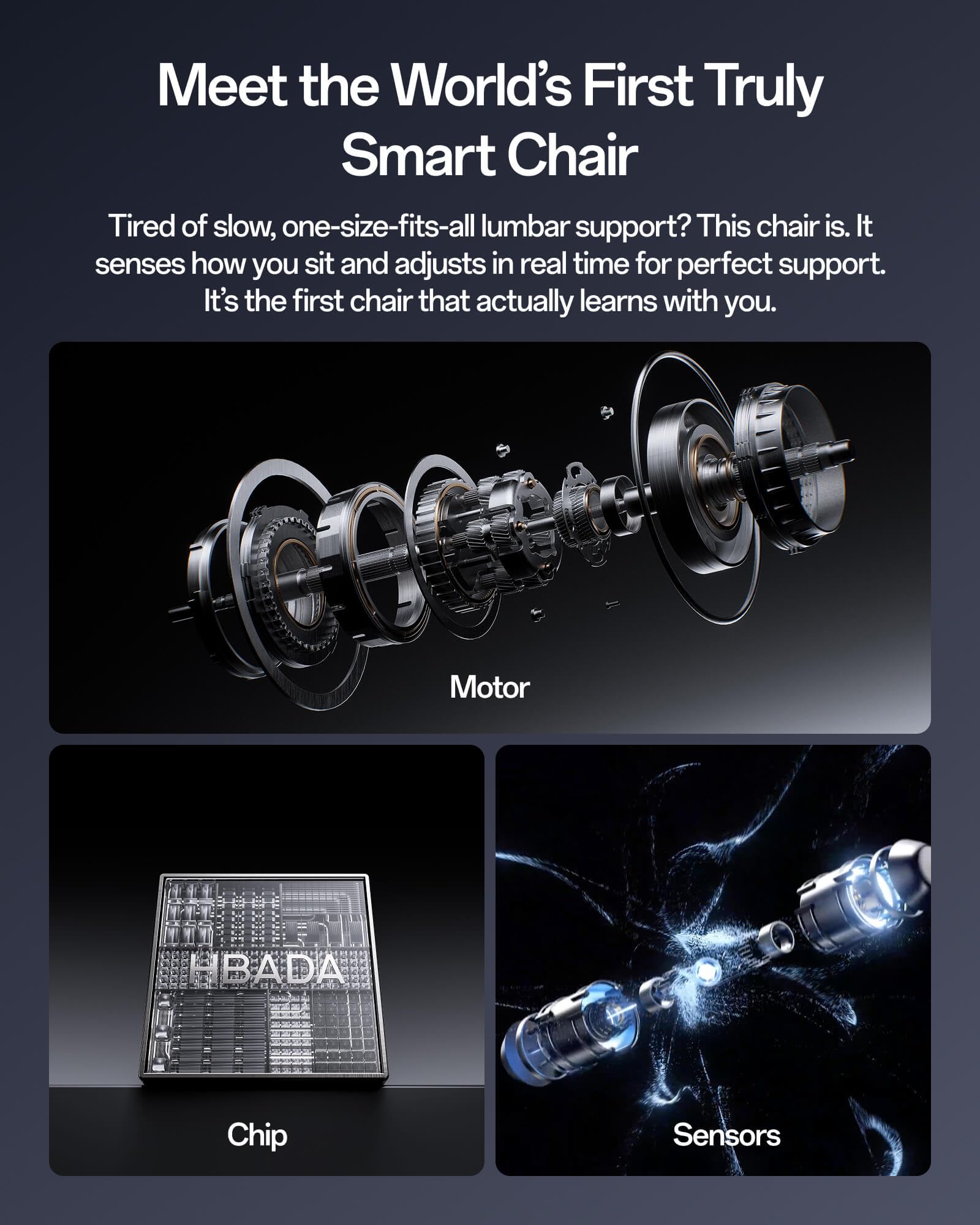 Hbada X7 Smart Ergonomic Chair, Office Chair, with Fully Automated Lumbar Tracking, 4D Adjustable Headrest, 720° Adjustable Armrests, Ventilated Seat Cushion, Swivel, Grey