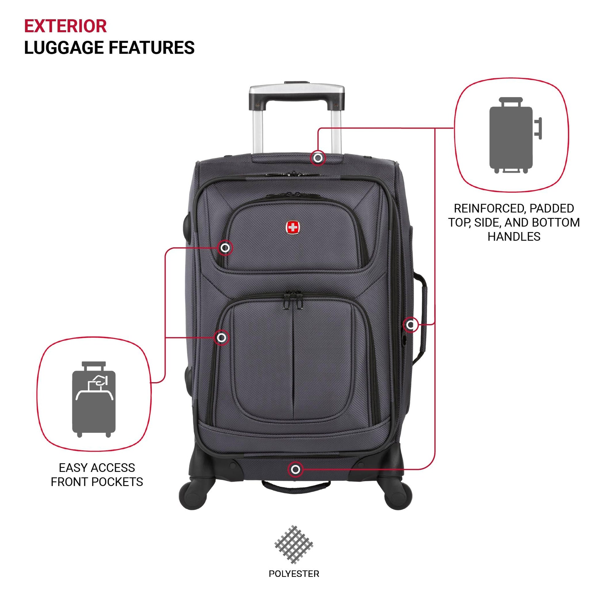 SwissGear Sion Softside Expandable Luggage with Spinner Wheels, Dark Grey, 2-Piece Set (21/25)